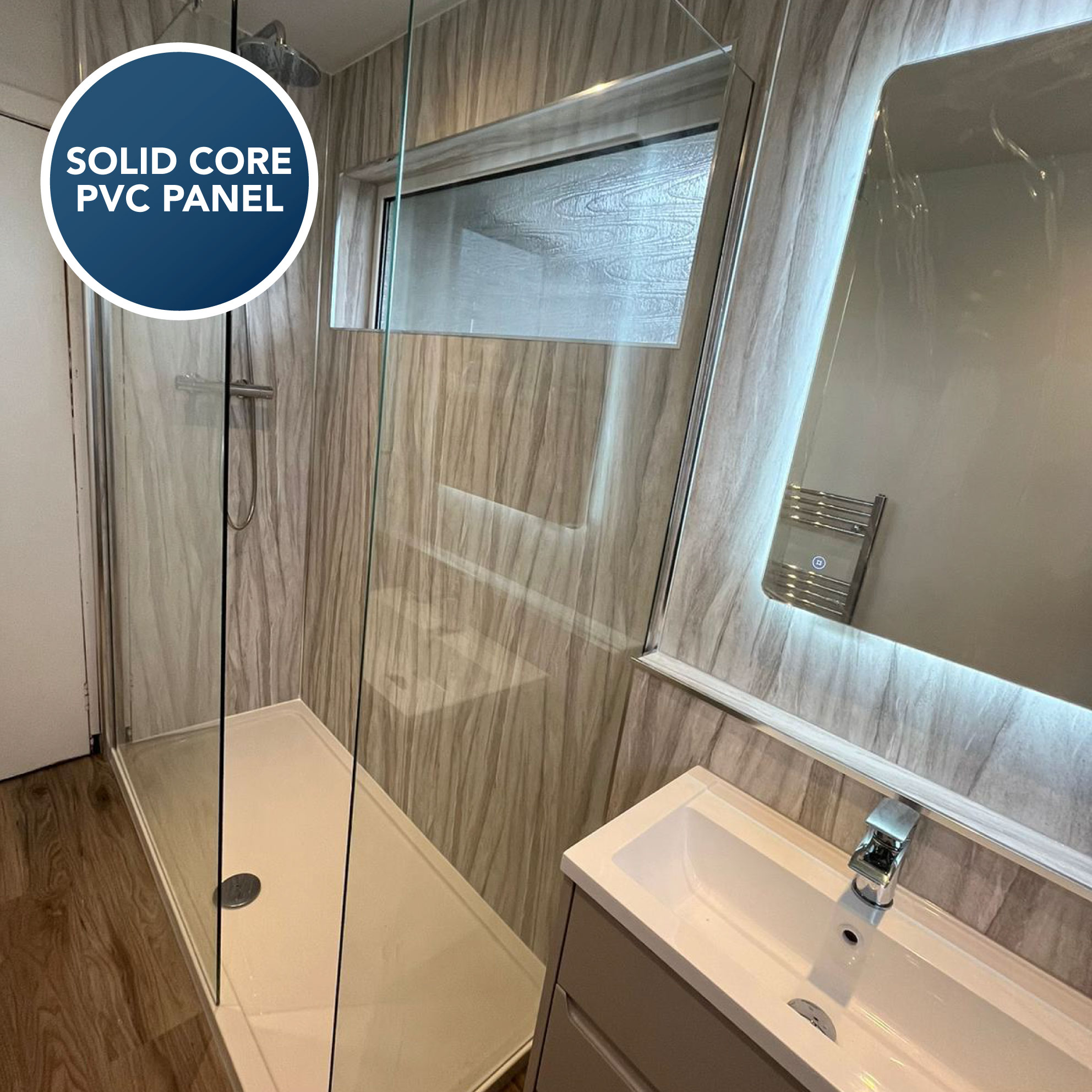 100% waterproof, Class 1 Fire Rated and with a wipe clean surface, no more mould, no more stained grout.